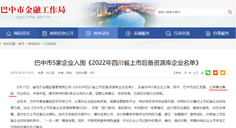 巴中市公用事业投资集团股份有限公司有序推进上市培育,加快上市工作尽职调查问题整改,推动企业健康规范发展。2023年2月公司被四川省地方金融监管局纳入四川省上市后备企业资源库。